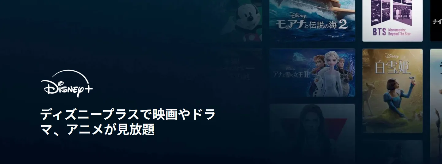 ディズニー、ピクサー、マーベル、スター・ウォーズ、ナショナルジオグラフィック、スターという、6つの強力なブランドを持つサービスです。これらはすべて独占配信となっており、コアなファンや小さい子供のいるファミリー層には代替えできないサービスです。Huluとのバンドル版もあります。
